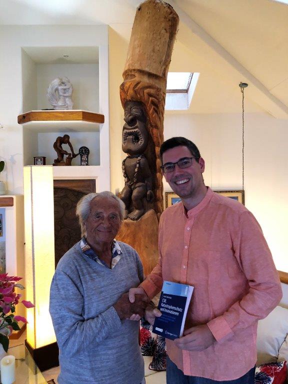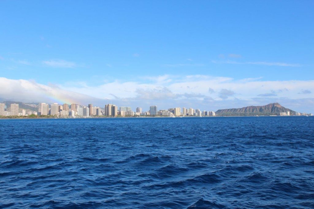 Zu Beginn unserer Reise stand also ein Besuch der Familie Allerstorfer mit einem Segelausflug an der East Shore auf der Insel Oahu auf dem Programm. Als AÖWB-Vorstandsmitglied durfte ich persönliche Grüße des neuen AÖWB-Präsidenten Werner Götz überbringen, der selbst auf eine jahrzehntelange Freundschaft mit Hermann zurückblickt. Erhöhte Sturmgefahr hielt uns im Hafen von einem Ablegen ab. Aber es gäbe keinen würdigeren Platz, um die Familie Allerstofer kennenzulernen. Mehrfache Pazifikumsegelungen, der Tatendrang und das Geschick, auch mit knapp 100 Jahren am Boot herumzuflitzen. Man spürt hier die Energie eines wahren Weltbürgers. Interessante Erzählungen aus dem Leben von Hermann ebneten unseren Beginn des Hawaii-Urlaubs. Neben einem persönlichen Schreiben von Präsident Ronald Reagan hängt auch eine Reportage über Hermanns Namen auf dem Mars in seinem Haus. Der Mars Science Laboratory Rover brachte neben einem Selbstporträt von Leonardo da Vinci auch Mikrochips mit den Namen von etwas mehr als einer Million Menschen auf den Mars. Als einer DER Weltbürger auf dieser Erde durfte Hermann selbstverständlich nicht fehlen. Es wäre also kein Wunder, wenn außerirdisches Leben durch Spuren eines weiteren Österreichers im Weltall (siehe goldene Schallplatte und Kurt Waldheim als damaliger UN-Generalsekretär im Rahmen der Voyager 1 Mission – die Voyager 1 ist übrigens bereits im interstellaren Raum angekommen) den Weg über den Mars doch irgendwie auf die Erde finden würden. Unser Gastgeschenk des Buchs „CSR, Katastrophenschutz und Innovation“ regte eine interessante Diskussion über die Zukunft an, da auch Hawaii nicht von Katastrophen verschont blieb und die Anzahl an Naturkatastrophen in den letzten Jahren zugenommen hat und aus denen es zu lernen gilt.